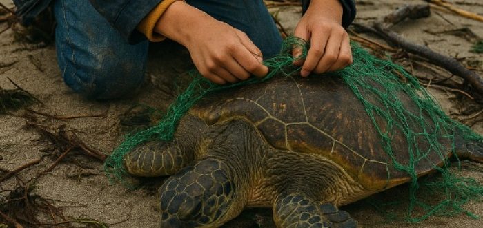 Dopo la tempesta, la riva sembrava un campo di battaglia. Il mare aveva riversato di tutto: assi, alghe, reti da pesca, bottiglie rotte. Il decenne Leo Morris camminava