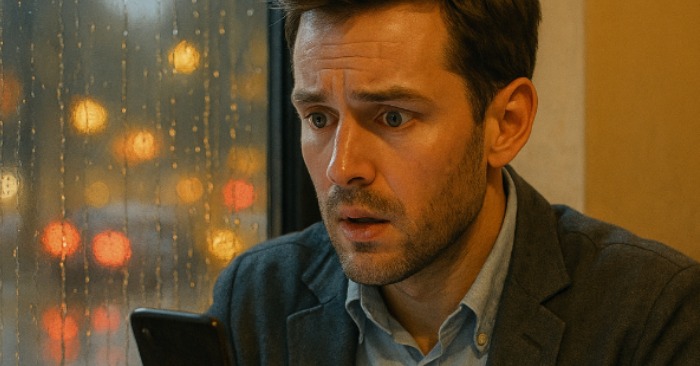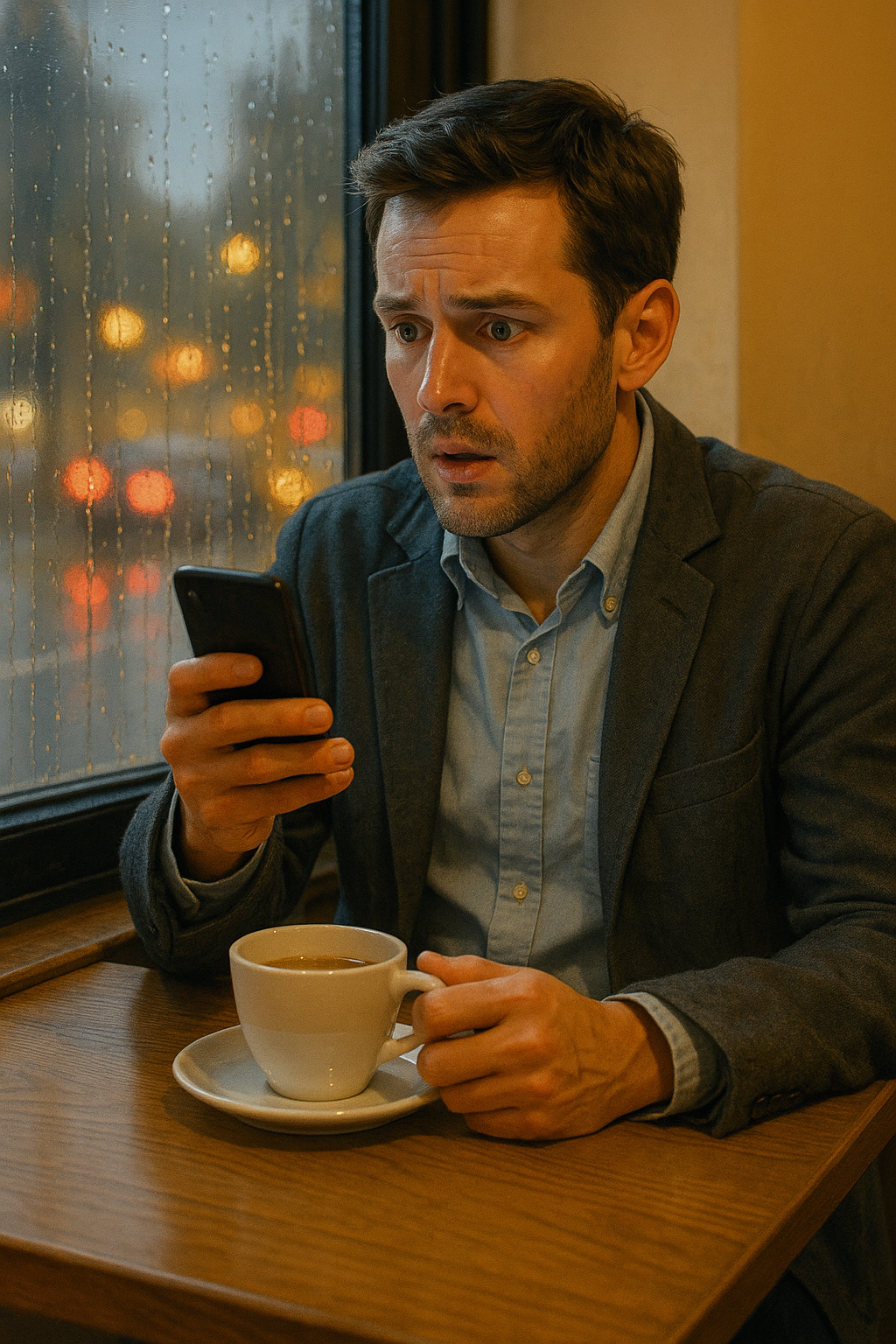 Bagnato fradicio e irritato, entrò in un piccolo caffè che non aveva mai notato prima. Le finestre brillavano dolcemente contro il grigio della sera e l’aria all’interno profumava di pane fresco e chicchi di caffè. Ordinò da bere, si sedette vicino alla finestra e tirò fuori il telefono per ammazzare il tempo.