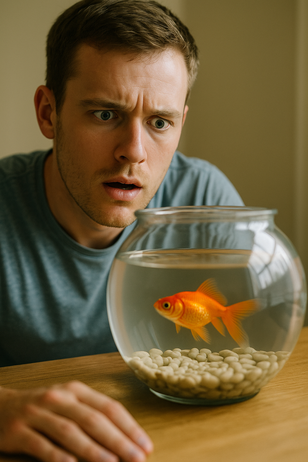 Il cuore gli batteva forte, afferrò il telefono per scattare una foto. Ma prima che potesse farlo, il pesce rosso sfrecciò nell’acquario, sparpagliando le lettere.