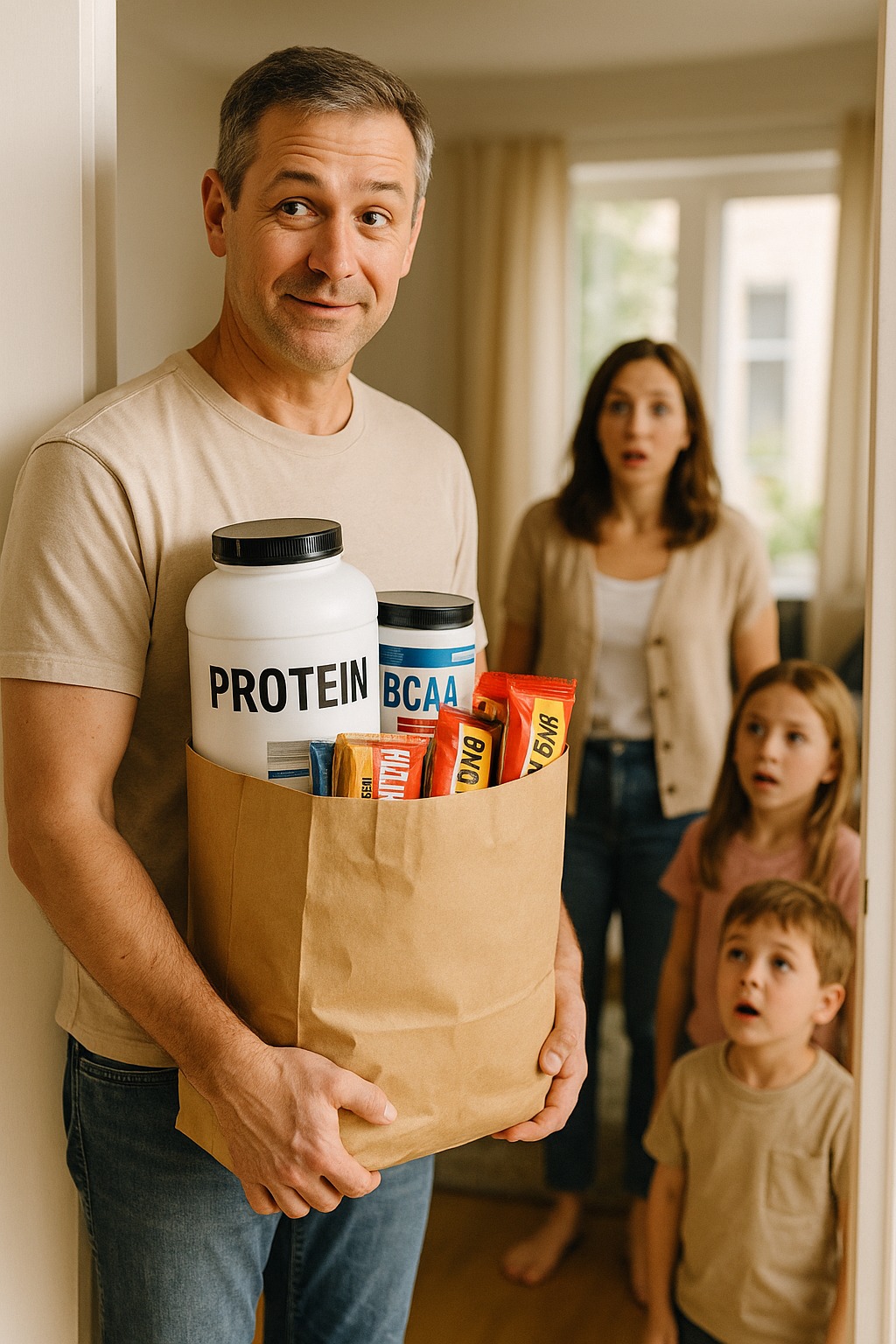 Passarono quaranta minuti. Avevo già iniziato a preoccuparmi quando tornò. E lì quasi caddi per lo stupore: invece del sacchetto con il pane, aveva portato un’enorme scatola di integratori alimentari per sportivi: proteine, barrette, persino alcune lattine con le scritte ‘BCAA’ e “creatina”.