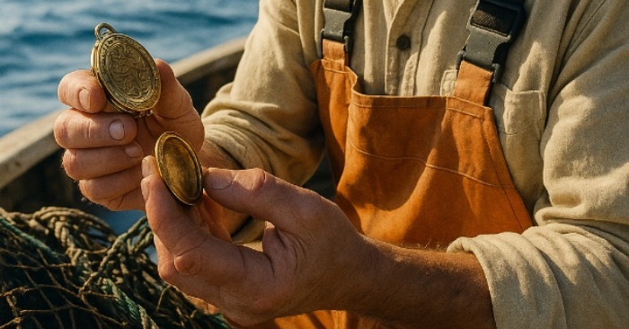 Nella rete c’era un medaglione. Vecchio, scurito, ma con un ornamento sorprendentemente bello. L’ho tolto, l’ho pulito e ho visto all’interno il ritratto di una donna. Il viso era giovane, con un sorriso dolce e occhi che esprimevano malinconia.