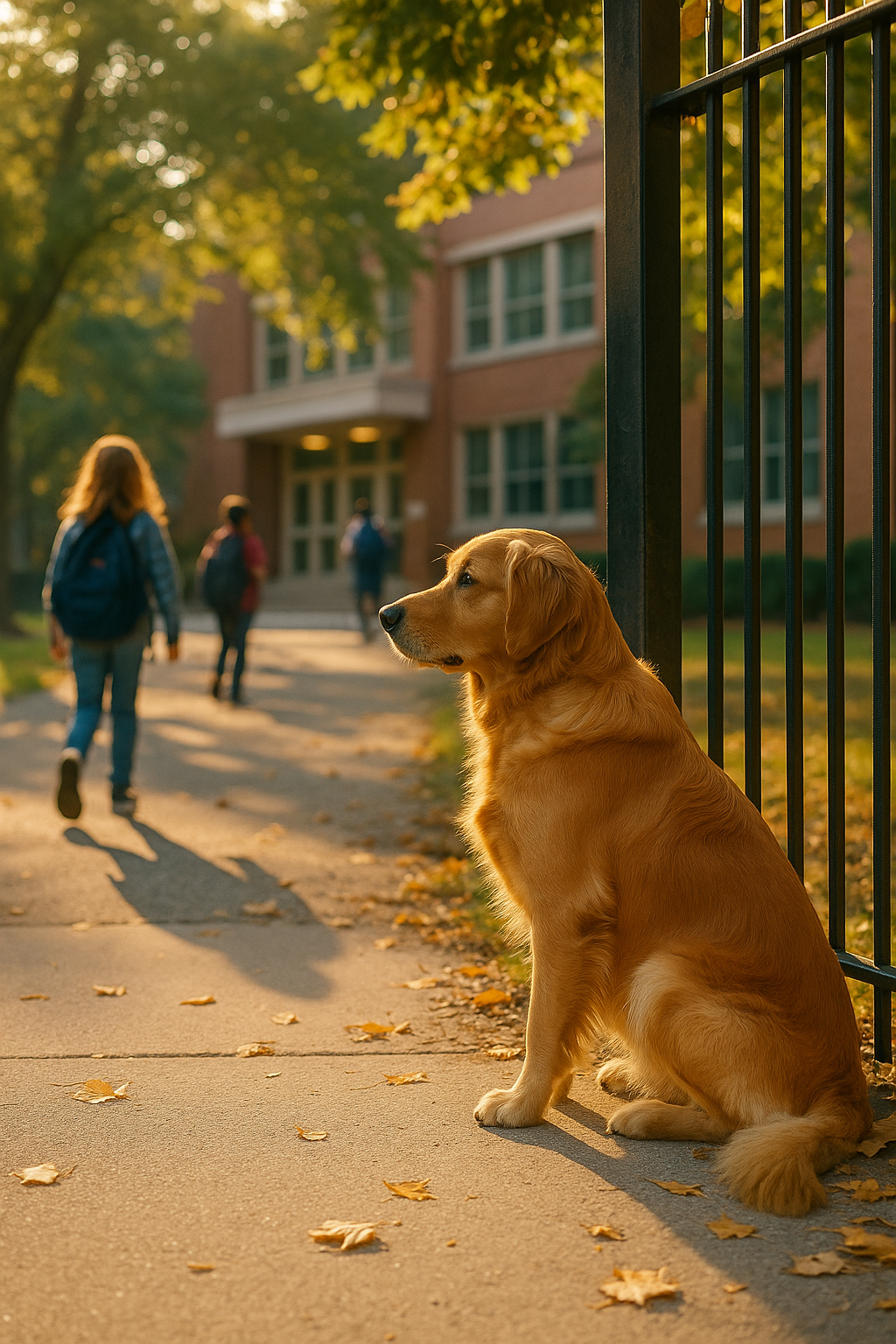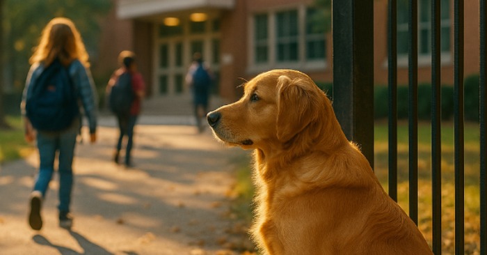 Non “fino all’angolo” — arrivava proprio al cancello, si sedeva vicino alla recinzione e restava lì finché il ragazzo non spariva dietro la porta.