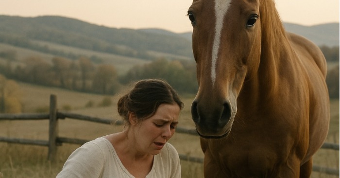 Quando arrivò l’ambulanza, i soccorritori rimasero scioccati: un grande cavallo giaceva accanto alla donna incinta, impedendo a chiunque di avvicinarsi, finché Emily stessa sussurrò: «Va tutto bene, ragazza… Sono dei nostri».