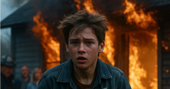 Dopo alcuni secondi che sembrarono un’eternità, Alex uscì di corsa dalla casa stringendo il gattino al petto. La folla rimase senza fiato. Sua madre gli si gettò addosso, abbracciandolo e piangendo, incredula che suo figlio fosse vivo. I vigili del fuoco arrivarono un minuto dopo. La casa era ormai irrecuperabile. Mentre spegnevano il fuoco, la famiglia a cui apparteneva se ne stava in disparte: un uomo anziano con una figlia di circa trent’anni.