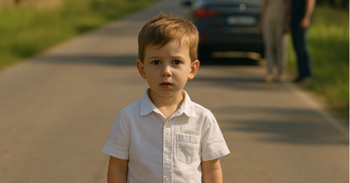 Sull’asfalto, sotto il sole cocente, c’era un bambino piccolo, scalzo, con una camicia chiara e dei pantaloncini. Non piangeva e non si muoveva, guardava semplicemente verso le auto.