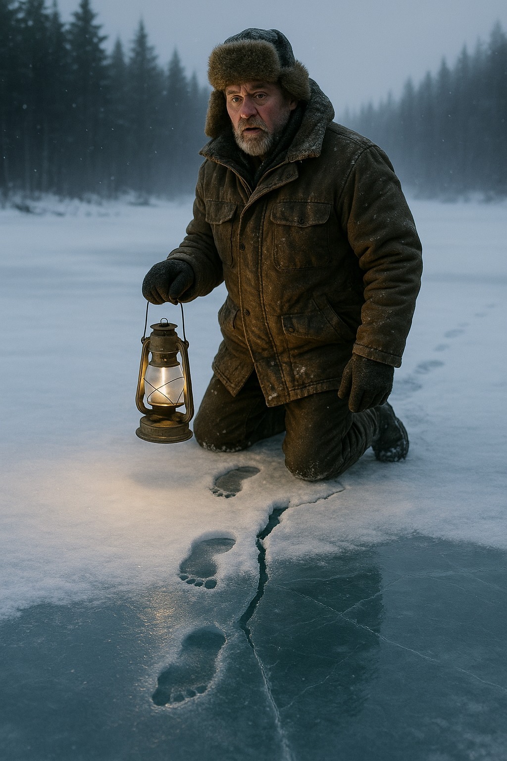 Sulla superficie bianca del lago, più vicino al centro, la neve era compattata in una linea. E in essa c’erano impronte chiare e profonde di piedi umani nudi. Piccoli, come quelli di una donna. Venivano dalla foresta… direttamente sul ghiaccio.
