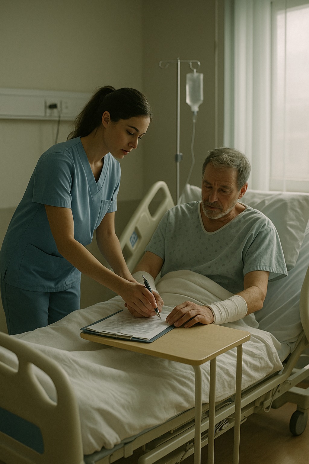 La giornata era iniziata come al solito. Clara correva lungo il corridoio dell’ospedale con una pila di documenti medici tra le mani. Era già il terzo turno consecutivo, la stanchezza, l’odore di antisettico e il caffè della macchinetta automatica si fondevano in un flusso infinito. La sua stanza era l’ultima della fila e all’interno giaceva un nuovo paziente, portato lì durante la notte dopo un incidente. Era un uomo di mezza età, con le braccia fasciate, indebolito ma cosciente.