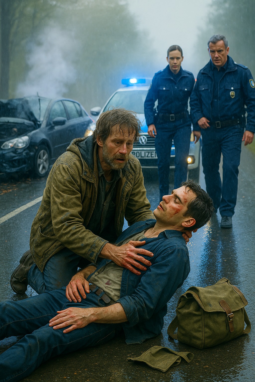 Il primo ad arrivare sul luogo dell’incidente fu un uomo vestito di stracci. Si chiamava Luca Weiss. Con i capelli arruffati, la giacca strappata e i jeans coperti di olio e sporcizia, sembrava più un senzatetto che un soccorritore. Ma fu proprio lui a saltare verso l’auto, strappare la cintura di sicurezza e cercare di raggiungere il conducente.