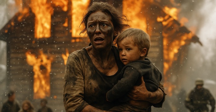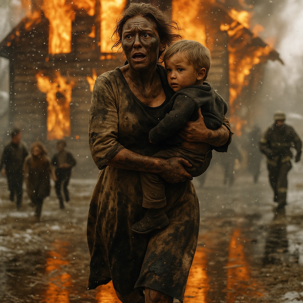 È corsa fuori e ha visto che la casa dei vicini era in fiamme. Il tetto era già in fiamme, le finestre crepitavano per il calore. I vicini, i genitori, non erano in casa: erano andati in clinica con il figlio più piccolo. All’interno c’erano i loro sei figli, il più grande di dieci anni, il più piccolo di tre.
