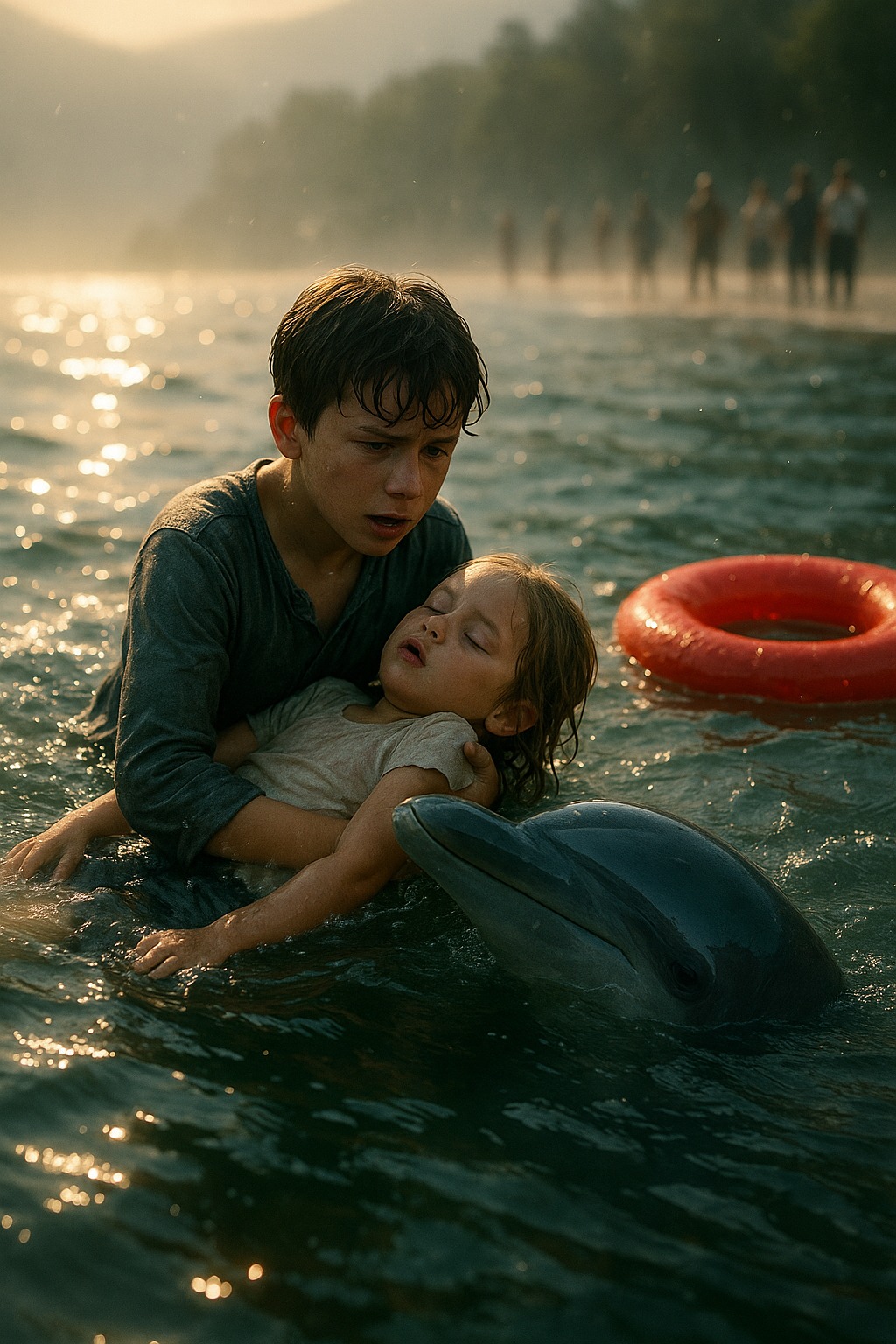 E il delfino… rimase vicino alla riva. Rimase in acqua per alcuni secondi, guardandoli. Luka si alzò, si avvicinò e l’animale batté delicatamente la coda sull’acqua, come per salutare. Poi si voltò e si allontanò in profondità.