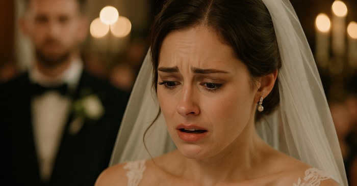 La sposa sussultò. Gli ospiti risero, pensando che fosse un caso. Ma lei abbassò lentamente la mano sotto il vestito, tirò fuori un piccolo telefono bianco e, vedendo il messaggio, impallidì.