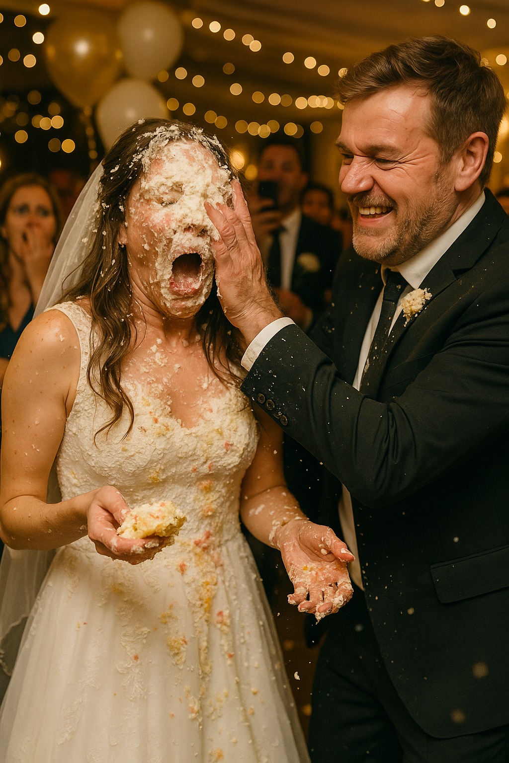 Colpo perfetto! La crema si spalmò sulla sua guancia e sul colletto della camicia bianchissima. Gli ospiti scoppiarono a ridere. Dopo un paio di secondi tutto si trasformò in una dolce battaglia: gli amici dello sposo contro le amiche della sposa, i camerieri in preda al panico che salvavano i piatti e i bambini che strillavano di gioia.