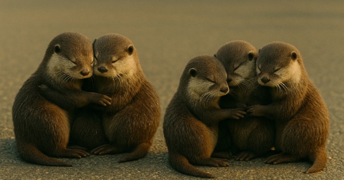 Una lontra abbracciava forte l’altra, stringendosi di lato.