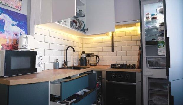 Jenta kjøpte endelig sin egen leilighet i en gammel bygning — men etter kjøpet hadde hun nesten ikke penger igjen til renovering. Så de bestemte seg for å renovere leiligheten gradvis og så økonomisk som mulig. Først på listen sto kjøkkenet – lite, bare 5,4 m², men det mest nødvendige.