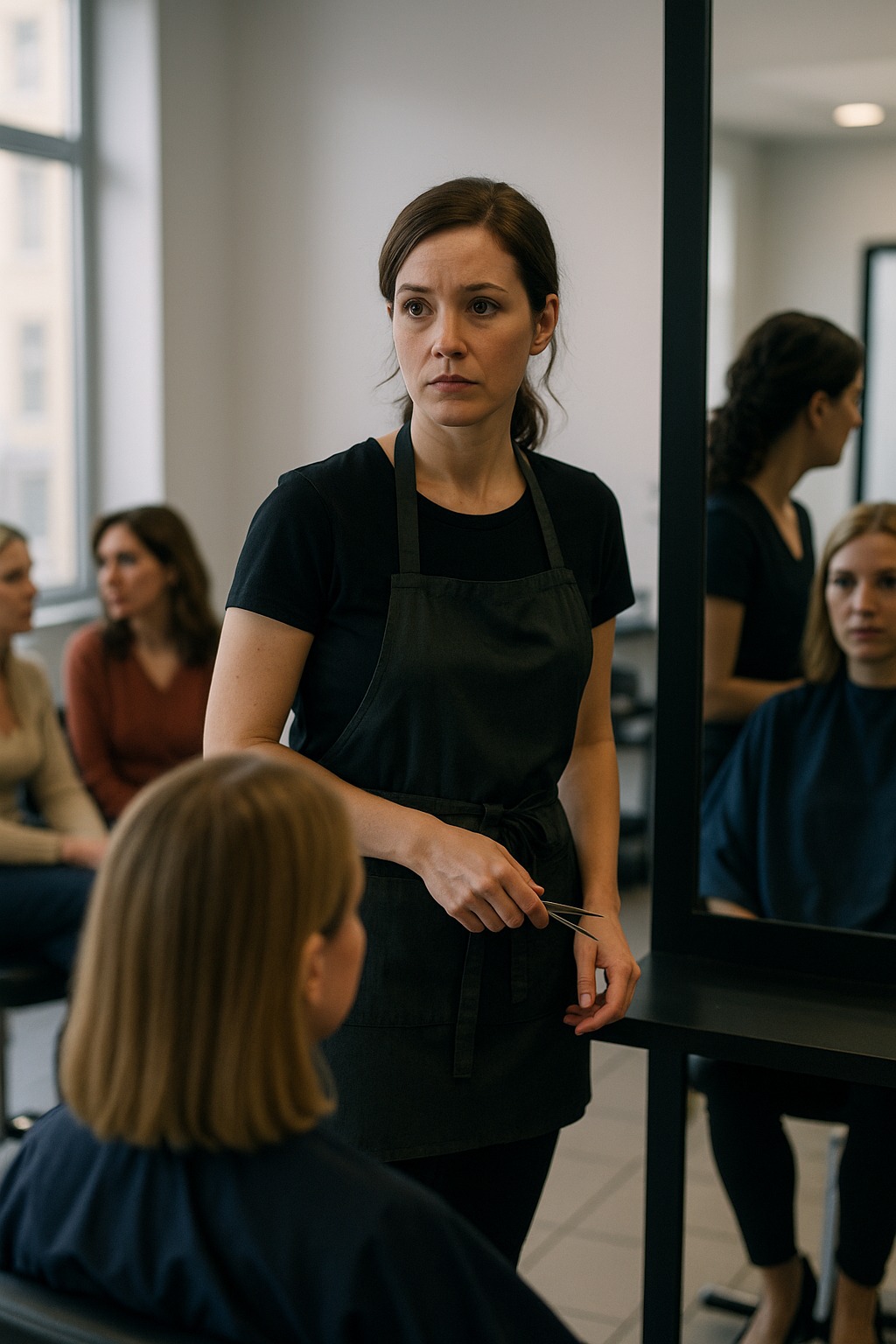 Quel giorno stava tagliando i capelli a una nuova cliente, silenziosa, dallo sguardo freddo. Sulla poltrona accanto, due clienti abituali chiacchieravano come al solito, ad alta voce e con sicurezza, come se l’intero salone fosse il loro palcoscenico.