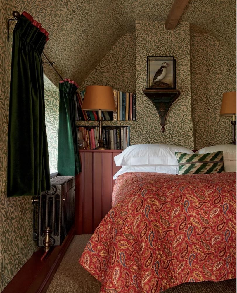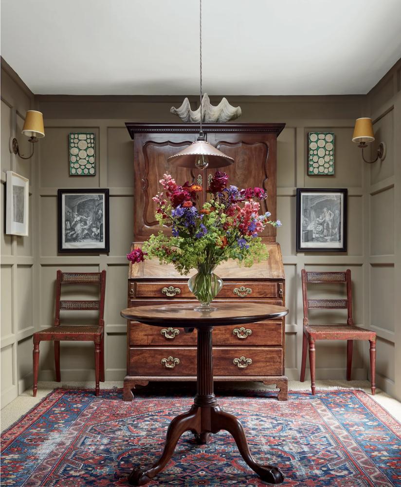 All’interno è come un museo dove si può vivere. Travi imbiancate, antiche incisioni alle pareti, un divano degli anni ’20, una libreria vintage e un piccolo bar in un angolo dove il padrone di casa versa whisky agli amici. Tutto è studiato nei minimi dettagli, ma senza ostentazione: ogni particolare trasmette intimità.