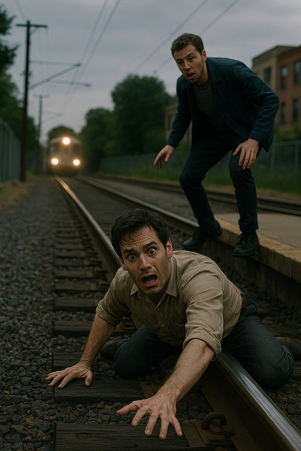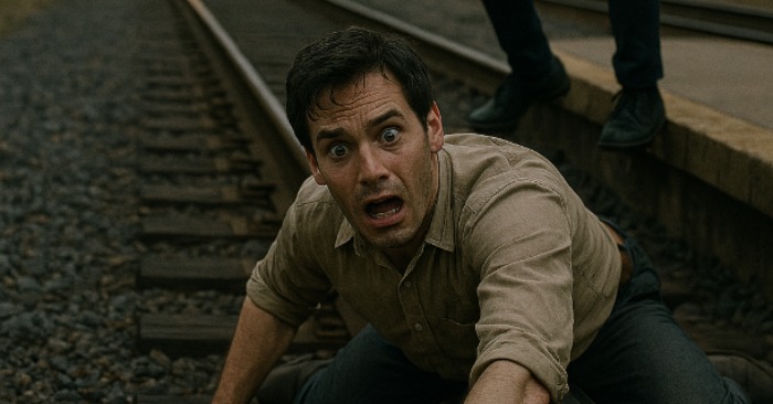 L’impatto fu più forte di quanto sembrasse: la gamba rimase incastrata tra le traversine e un dolore acuto gli attraversò la caviglia. Cercò di alzarsi, ma non ci riuscì. Provò a tirare fuori la gamba, ma fu inutile. Tutto il corpo tremava e la piattaforma sopra di lui sembrava troppo alta, come se fosse cresciuta di un metro. Nei primi secondi pensò che fosse solo paura e che presto si sarebbe rialzato. Ma poi sentì un rumore.