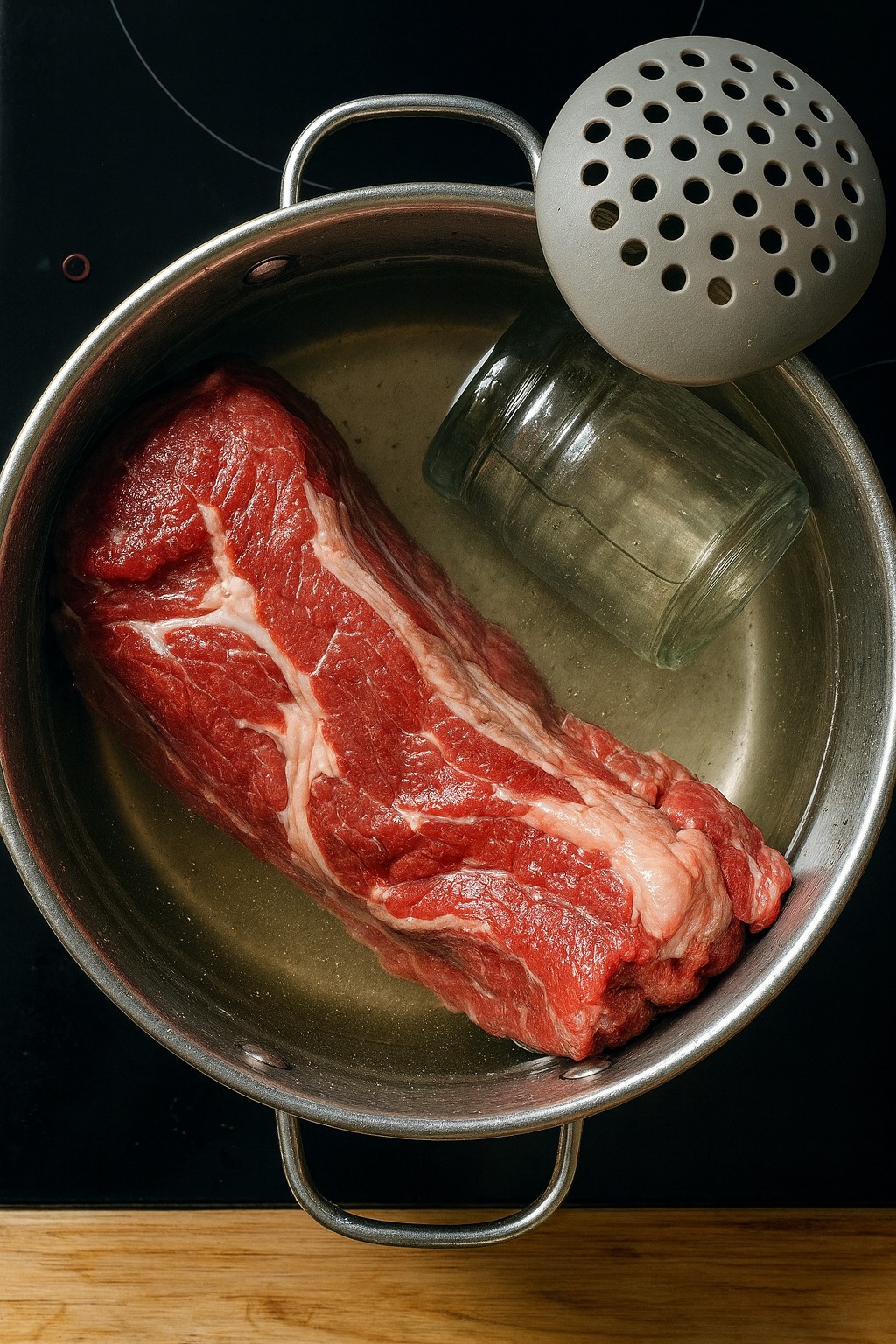 Mentre la carne bolliva, il bicchiere all’interno tremava leggermente a causa delle bolle, come se avesse una vita propria. Lo guardavo e cercavo di capire: perché? A che scopo? È una nuova moda? O è un vecchio “trucco della nonna” di cui non avevo mai sentito parlare?