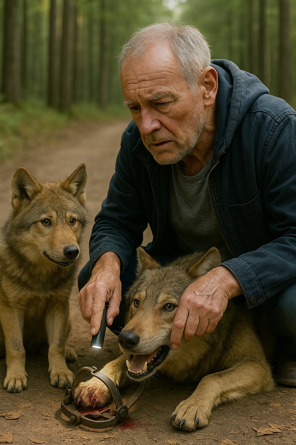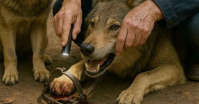 Nonostante la paura, si avvicinò con cautela e parlò a voce bassa per non spaventare né il lupo adulto né il cucciolo. Le sue mani tremavano, ma riuscì ad aprire la trappola e a liberare l’animale. Il lupo non scappò, ma spinse leggermente Leon con il muso, come per ringraziarlo.
