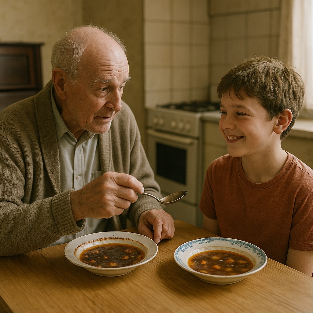 «Sì, ancora io», sorrise Leo, sollevando un altro sacchetto di carta. «Oggi ho cucinato la zuppa. Un po’ bruciata, ma commestibile».