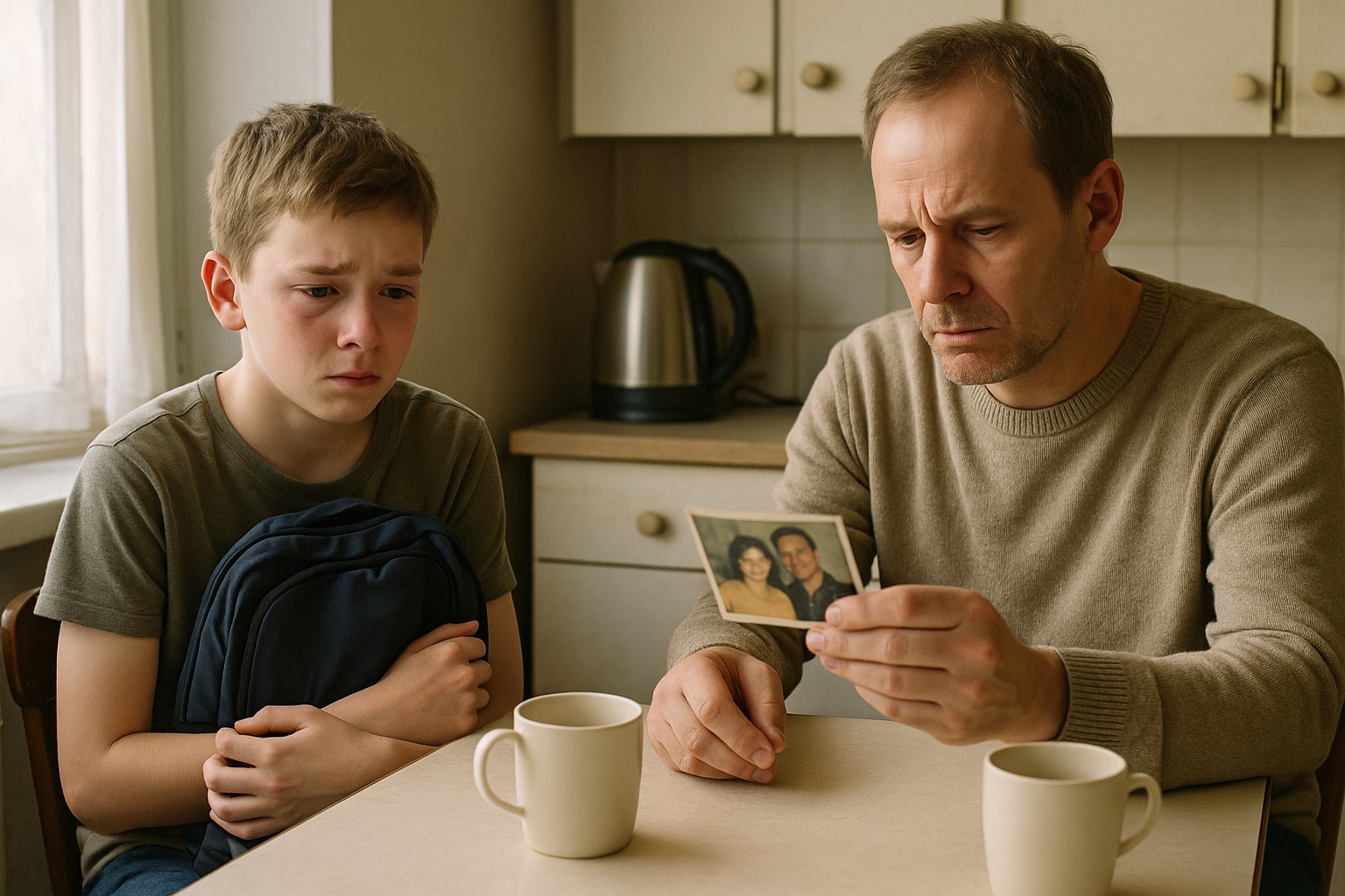 Preparai il tè perché non sapevo cos’altro fare, con le mani maldestre che maneggiavano le tazze. Liam si sedette al piccolo tavolo della cucina, con lo zaino sulle ginocchia come uno scudo.