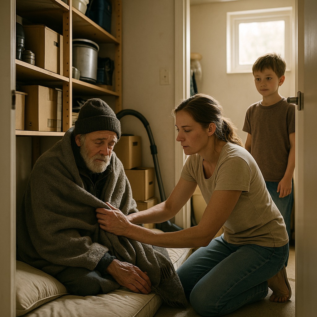 Salirono lentamente le scale insieme: Noah con il piatto vuoto in mano, Emma che sosteneva il braccio di Michael, sentendo le ossa sotto la manica. Nel piccolo appartamento, lei liberò uno spazio nel ripostiglio, stendendo un vecchio materasso e la coperta più spessa che avevano.