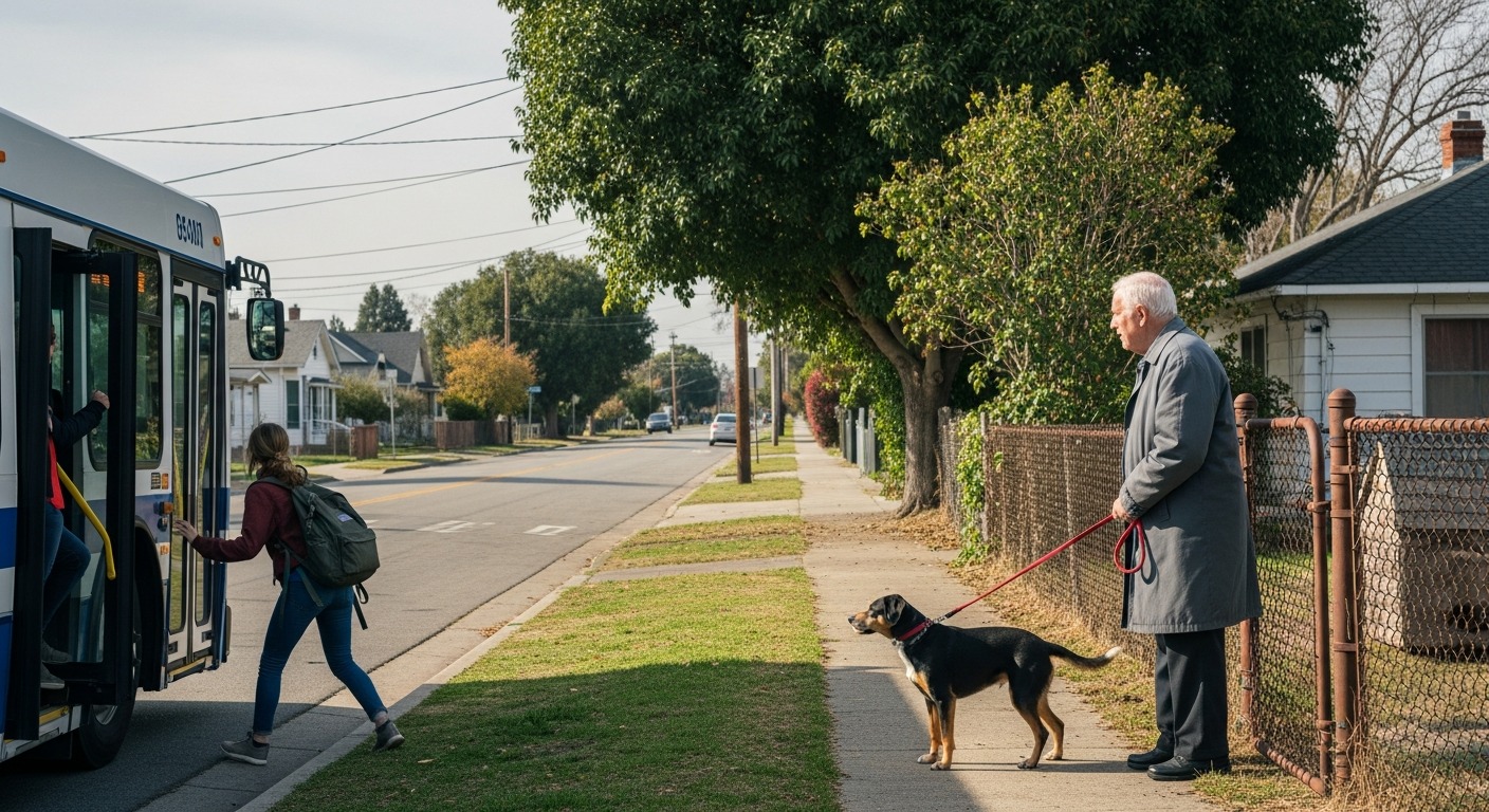 Il vecchio continuava a stare in piedi ogni pomeriggio alle 4:15 con un guinzaglio in mano, e i vicini pensavano che avesse perso la testa. Pioggia, vento, neve o sole cocente: lui se ne stava in piedi accanto al cancello arrugginito, fissando la strada come se aspettasse qualcuno che solo lui poteva vedere.