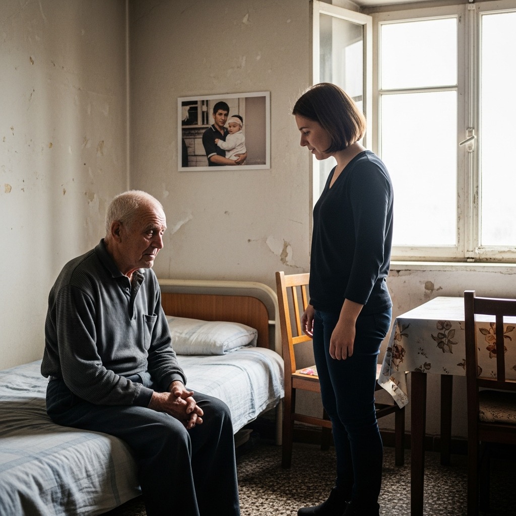 Il suo appartamento era quasi vuoto. Un letto stretto, un tavolino, una sedia. Sulla parete, una fotografia sbiadita di un giovane che teneva in braccio un bambino, entrambi con il viso rivolto dall’altra parte rispetto alla macchina fotografica, come se volessero nascondersi da lei.