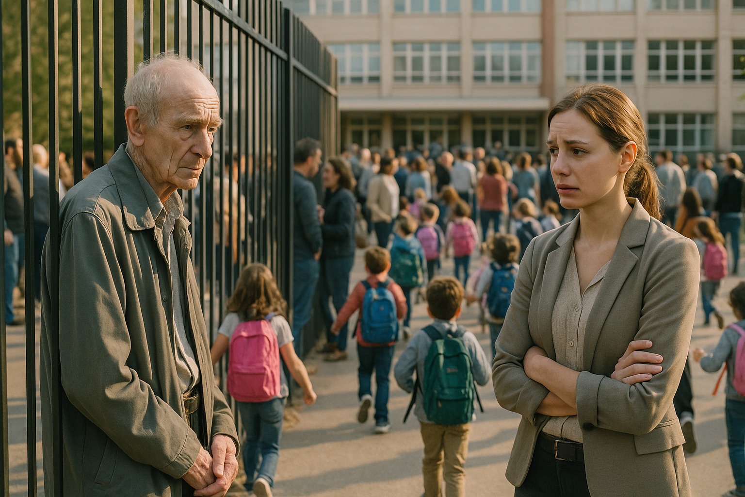 Prima che lei potesse chiedere, un genitore la chiamò per nome e, quando si voltò, il vecchio se n’era già andato, con passo lento ma deciso.