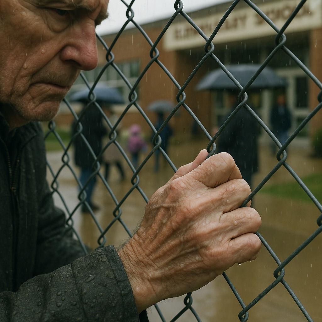 Un pomeriggio piovoso, mentre i genitori correvano con gli ombrelli, lui rimase all’aperto, bagnandosi, con lo sguardo fisso sulla porta da cui uscivano i bambini. Qualcosa nel suo volto mi ha fatto venire un nodo allo stomaco. Non era il sorriso vago di un passante che si godeva la scena. Era desiderio. E dolore.