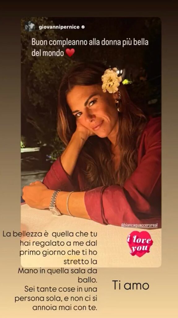 Le dediche non passano inosservate. Pernice scrive parole dirette e senza filtri: auguri alla donna più bella del mondo. La risposta di Bianca è altrettanto intensa, un messaggio che parla di bellezza condivisa fin dal primo giorno passato insieme in sala da ballo, di complicità e di un amore che non annoia mai.
