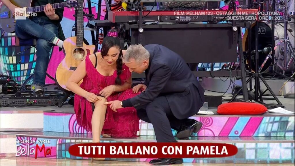 È successo nello studio di Bella Ma’. Pamela, 49 anni, è entrata in scena di corsa indossando un elegante abito fucsia ricoperto di frange. Un attimo dopo, la perdita di equilibrio. La scivolata improvvisa sul pavimento e l’impatto davanti alle telecamere accese. Lo studio si è fermato di colpo.