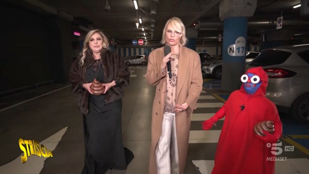 Il metodo è quello classico di Striscia: avvicinarsi ai trasgressori, far notare l’errore e consegnare la celebre “cacchina” di plastica, simbolo della figuraccia appena fatta. Alla prima consegna, davanti a due ragazzi sorpresi sul fatto, uno esclama incredulo: “Ma chi è, Maria De Filippi?”. Una scena surreale che segna subito il tono del servizio.