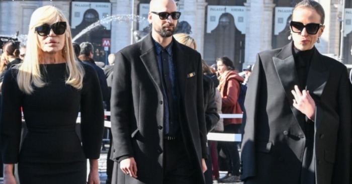 Tra i primi ad arrivare Simona Ventura, accompagnata dal marito Giovanni Terzi. Poco dopo Donatella Versace, stretta alla figlia Allegra, visibilmente provata. Dall’estero sono giunti nomi di peso assoluto come Anne Hathaway, arrivata con il marito Adam Shulman, insieme a personalità che hanno segnato decenni di moda e cultura.