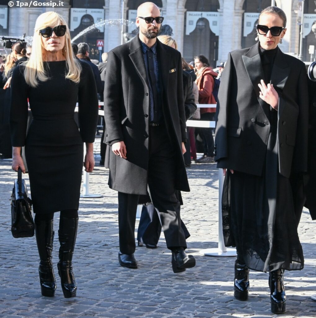 Presente anche Anna Wintour, icona assoluta del fashion system, con un’espressione insolitamente cupa. Accanto a lei Afef, Olivia Palermo e molte altre figure che, in modi diversi, hanno condiviso con Valentino momenti di lavoro, amicizia e ispirazione. Immancabile Giancarlo Giammetti, storico compagno di vita e di lavoro dello stilista, insieme a Vernon Bruce Hoeksema, ultimo compagno di Valentino.
