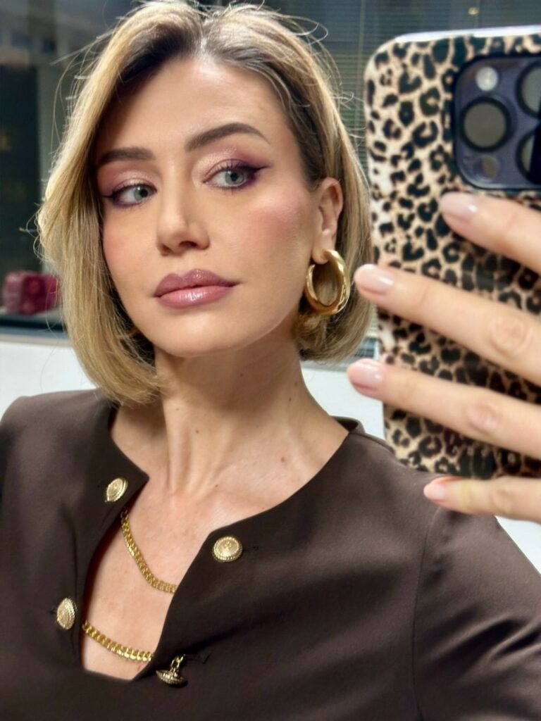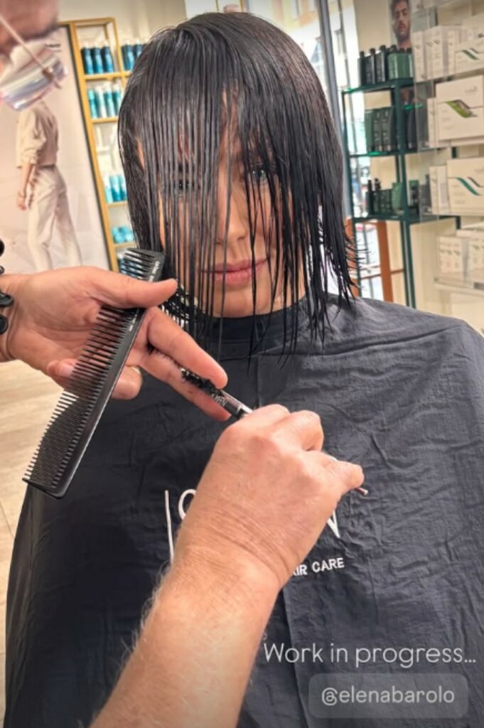 Il risultato è un bob corto, elegante, ispirato allo stile francese. Il cosiddetto chin bob, con lunghezza all’altezza del mento e punte leggermente sfilate davanti, incornicia il volto e mette ancora più in risalto i suoi occhi chiari, che ora appaiono quasi ipnotici. Un cambiamento che segna una rottura evidente con il passato.