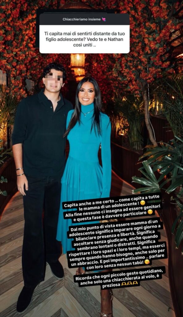 La showgirl calabrese ha spiegato che nessuno insegna davvero a essere genitori e che questa fase della vita dei figli è particolarmente complessa. Per lei, essere madre di un adolescente significa imparare ogni giorno a trovare il giusto equilibrio tra presenza e libertà, restare accanto senza invadere, ascoltare senza giudicare anche quando i ragazzi sembrano lontani o distratti.