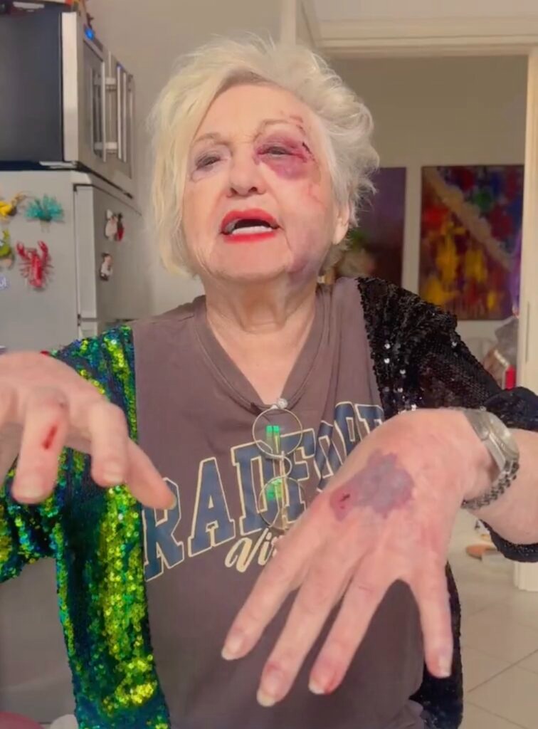 Nel video appare seduta davanti a un tavolo, probabilmente in casa, e mostra senza filtri i segni sul volto e sulle mani. Lividi, graffi ed ecchimosi sono ben visibili mentre racconta di essersi sentita completamente stravolta dopo l’accaduto.