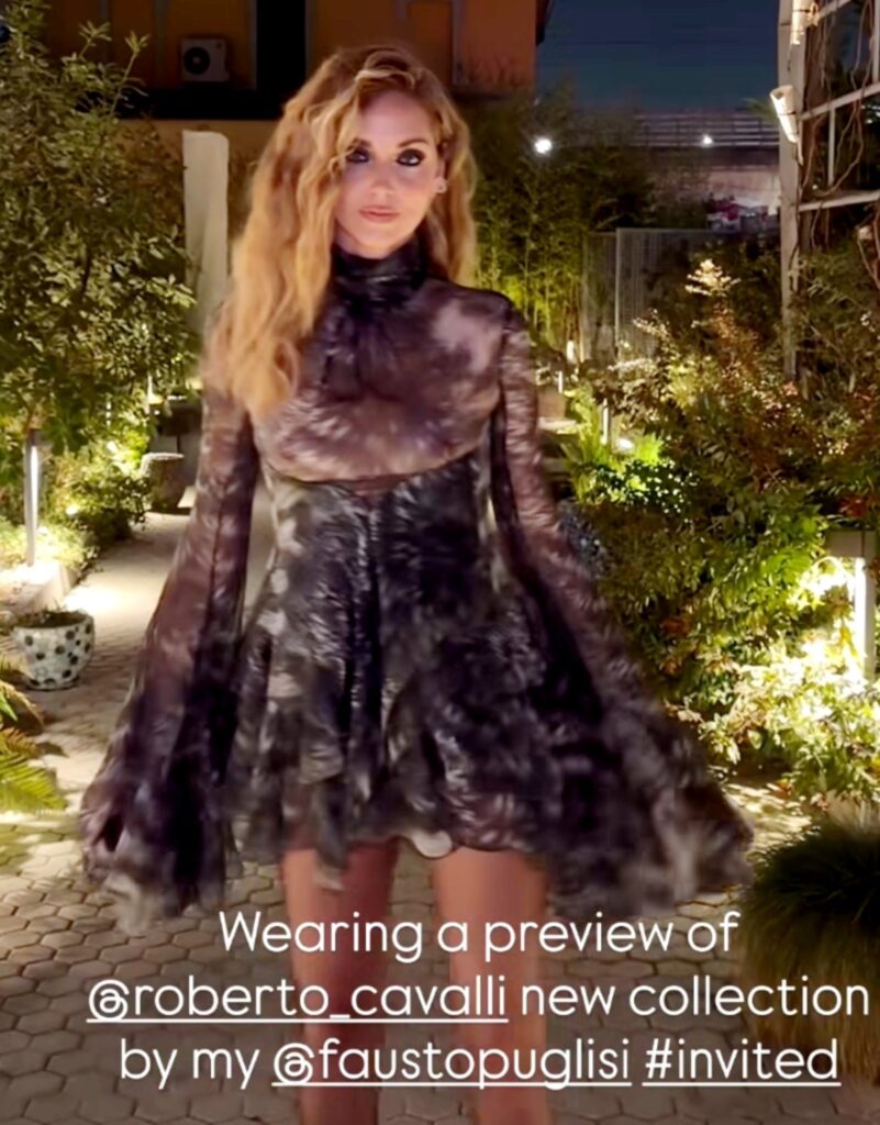 Alla Milano Fashion Week basta un ingresso per cambiare l’atmosfera. E quando arriva Chiara Ferragni, l’aria si fa elettrica. Alla sfilata di Roberto Cavalli, la 38enne si prende la scena con un look firmato dal direttore creativo Fausto Puglisi che non lascia spazio all’indifferenza.