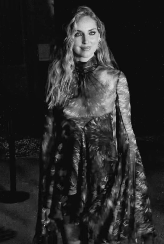 L’arrivo di Chiara diventa in pochi minuti uno degli highlight mediatici della sfilata. Il look, pur spinto, mantiene una costruzione raffinata che evita l’effetto eccessivo. Lei stessa condivide le immagini sui social e, come prevedibile, i like si moltiplicano rapidamente.