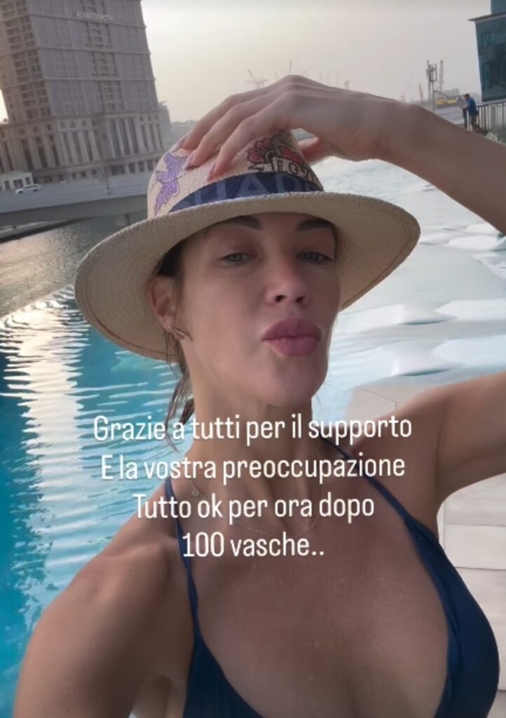 Con il suo tono diretto ha detto ai follower che a Dubai sono “in stand by”. Subito dopo ha aggiunto con leggerezza di aver appena completato il suo allenamento in piscina, facendo cento vasche.