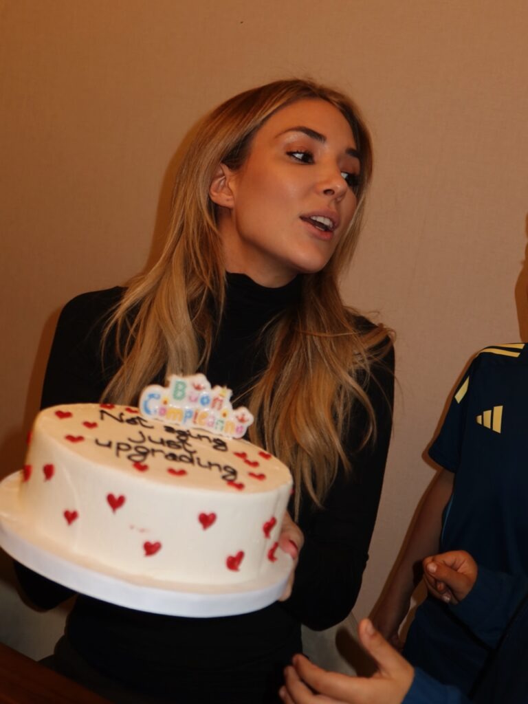 A catturare l’attenzione è stata anche la torta scelta per festeggiare l’ingresso nei 31 anni. Sul dolce compariva una frase ironica in inglese: “Not aging just upgrading”, ovvero “Non sto invecchiando, sto solo facendo un upgrade”. Una battuta giocosa che ha accompagnato il momento delle candeline.