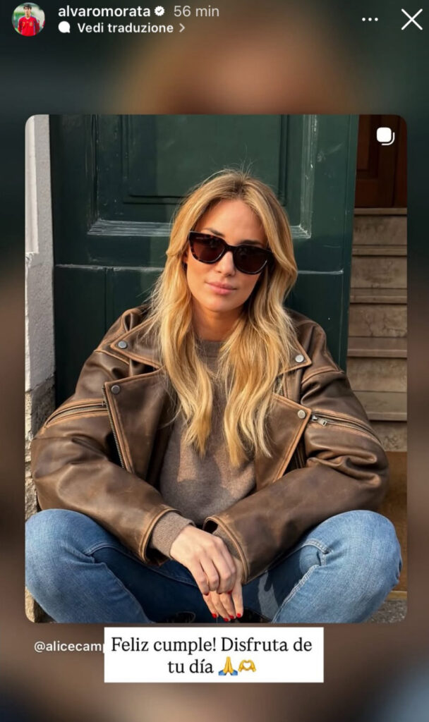 Morata ha condiviso una storia pubblicata da Alice in cui lei scriveva “Ultimo giorno da 30enne”. Sopra l’immagine ha aggiunto un messaggio semplice ma diretto: “Buon compleanno! Goditi la tua giornata”.