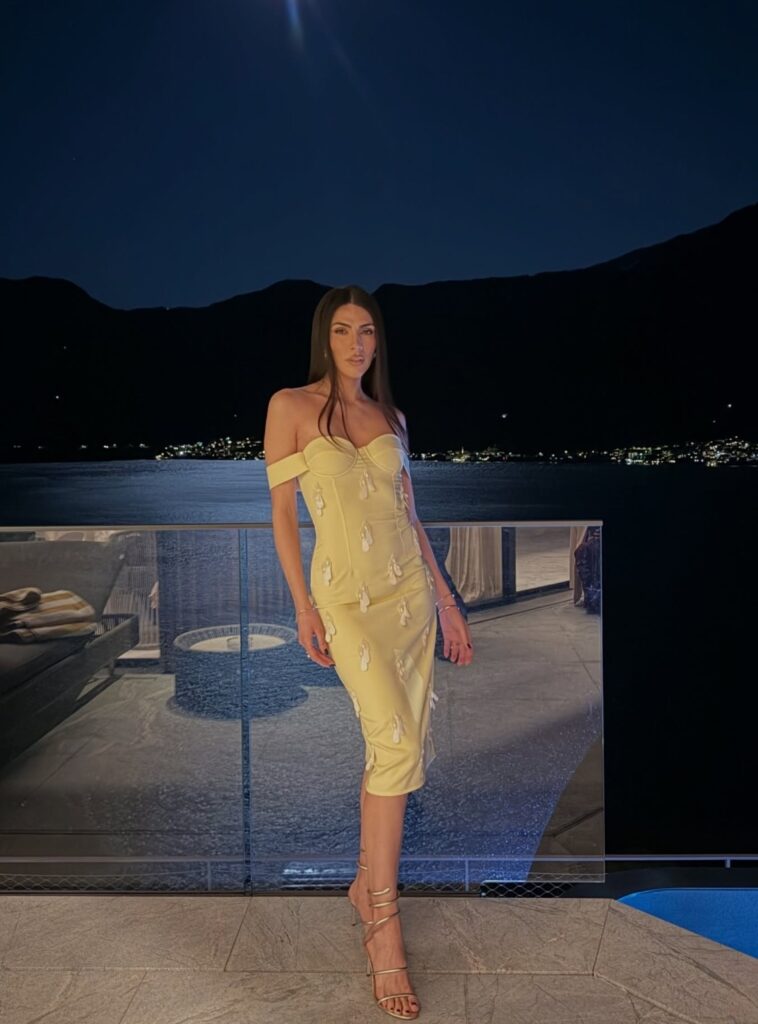 L’influencer e conduttrice si è mostrata in una versione impeccabile: un abito longuette giallo pastello aderente, capace di esaltare la sua silhouette, lasciando le spalle scoperte. I capelli lisci, divisi da una riga centrale, e un trucco curato nei minimi dettagli hanno completato un look semplice ma d’impatto.