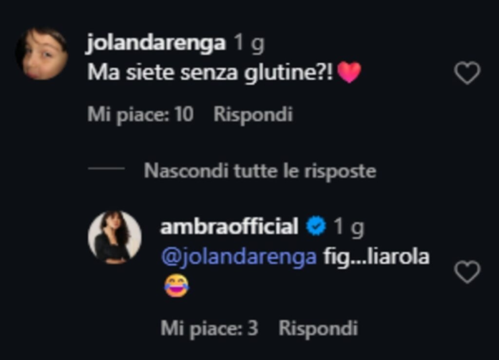Nella foto, Pico, presidente e amministratore delegato di Warner Music Italia, appare ben visibile e sorridente, mentre Ambra lo bacia teneramente sulla tempia, un gesto che parla chiaro. A questo scatto seguono una serie di commenti affettuosi. La figlia di Ambra, Jolanda Renga, ha commentato ironicamente con: “Ma siete senza glutine?”, facendo un riferimento simpatico al tipo di vita sana della madre. Anche il fidanzato di Jolanda, Filippo Carrante, non è passato inosservato con un messaggio misterioso: “Venticello”, che ha suscitato il sorriso di Pico, il quale ha risposto con delle faccine che ridono. Insomma, Pico è ormai un membro ufficiale della famiglia.