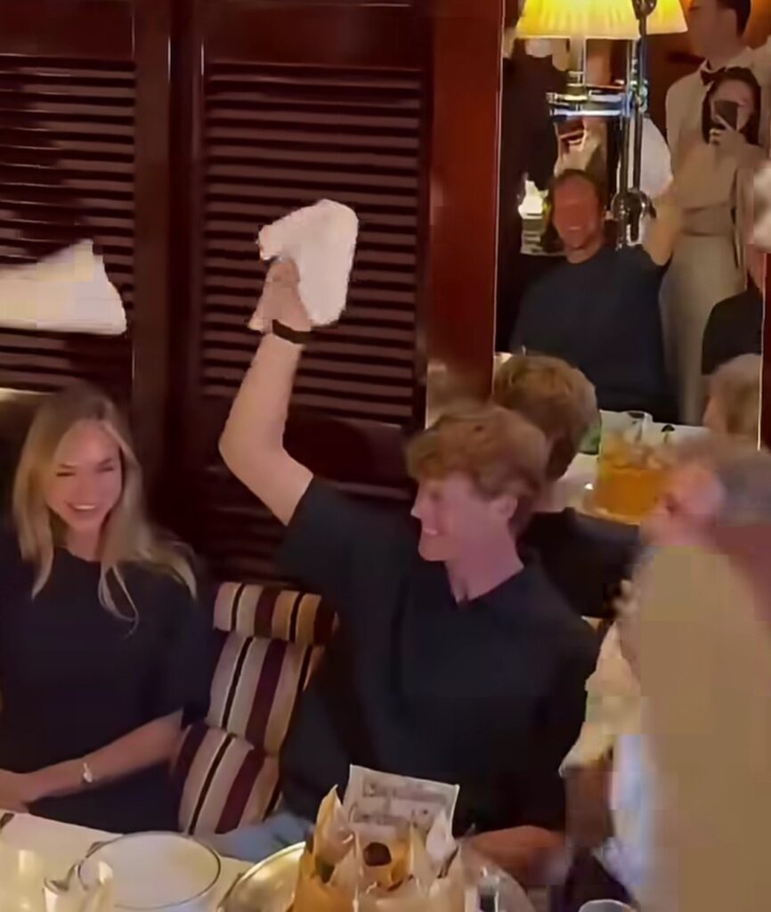 La vittoria del giovane tennista italiano in finale contro il rivale Carlos Alcaraz gli ha permesso di riprendersi la vetta del tennis mondiale, e la serata a Monte Carlo è stata l’occasione perfetta per condividere la gioia con chi gli è vicino. Il locale era pervaso dall’euforia, e per celebrare il suo primato, Jannik ha preso parte a un’improvvisata “fazzolettata”, un gesto che ha coinvolto tutti i presenti. Insieme, hanno cantato con entusiasmo “We Are The Champions”, creando un’atmosfera da festa che resterà sicuramente nella memoria di tutti.