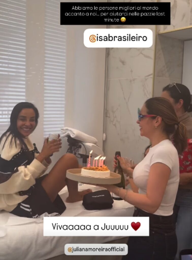 La scena è stata tanto improvvisa quanto emozionante. Juliana è rimasta senza parole, visibilmente sorpresa e divertita. Il momento è stato condiviso sui social direttamente dal centro estetico, che ha accompagnato il video con parole affettuose: “Da cliente ad amica del cuore. E oggi festeggia con noi. Abbiamo le persone migliori del mondo accanto a noi per aiutarci nelle pazzie last minute. Viva Juuu”.