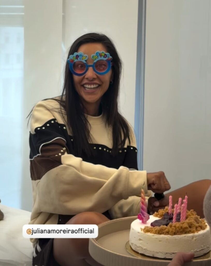 Tra risate e leggerezza, la Moreira si è lasciata andare al momento, indossando anche un paio di occhiali a tema con la scritta “happy birthday”, entrando pienamente nello spirito della sorpresa.