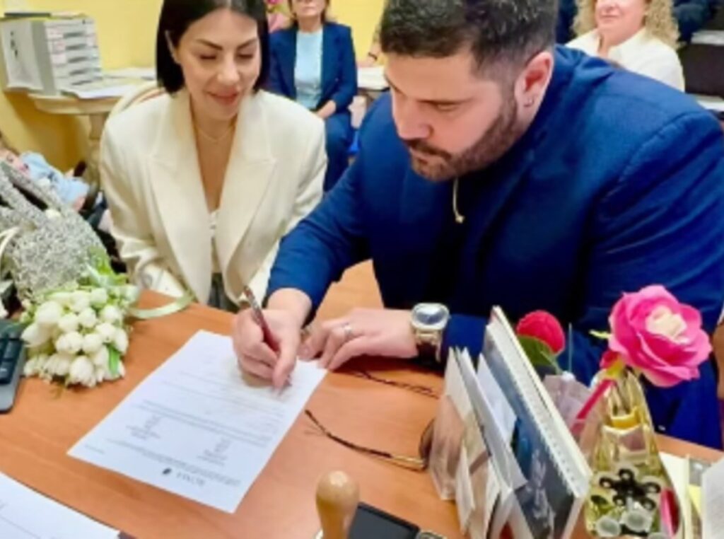 La coppia ha celebrato la promessa di matrimonio, firmando i documenti del rito civile e scegliendo poi di festeggiare in modo intimo ma simbolico, con una torta nuziale e alcuni scatti pubblicati sui social. Le immagini raccontano una felicità evidente, fatta di sguardi complici e sorrisi che non lasciano spazio a dubbi.
