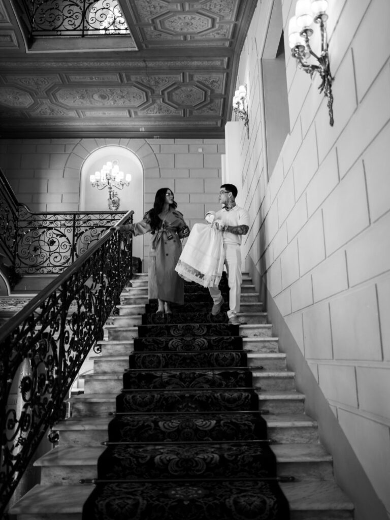 Dopo la cerimonia, la festa si sposta a pochi passi dalla Basilica, nel Lumen Cocktails & Cuisine, all’interno del lussuoso The St. Regis Rome. L’atmosfera cambia, diventa più leggera. Tra brindisi, risate e abbracci, gli ospiti partecipano a un ricevimento elegante, concluso con una torta scenografica a più piani.